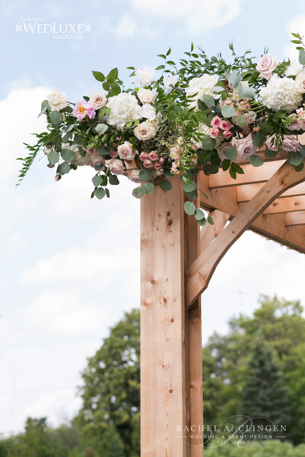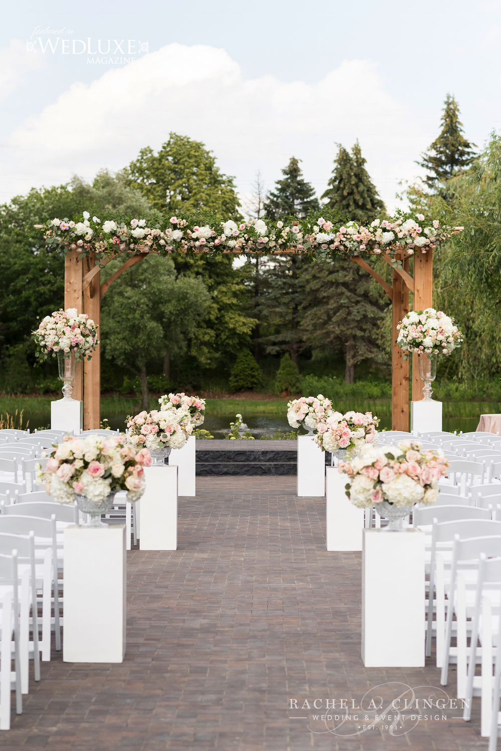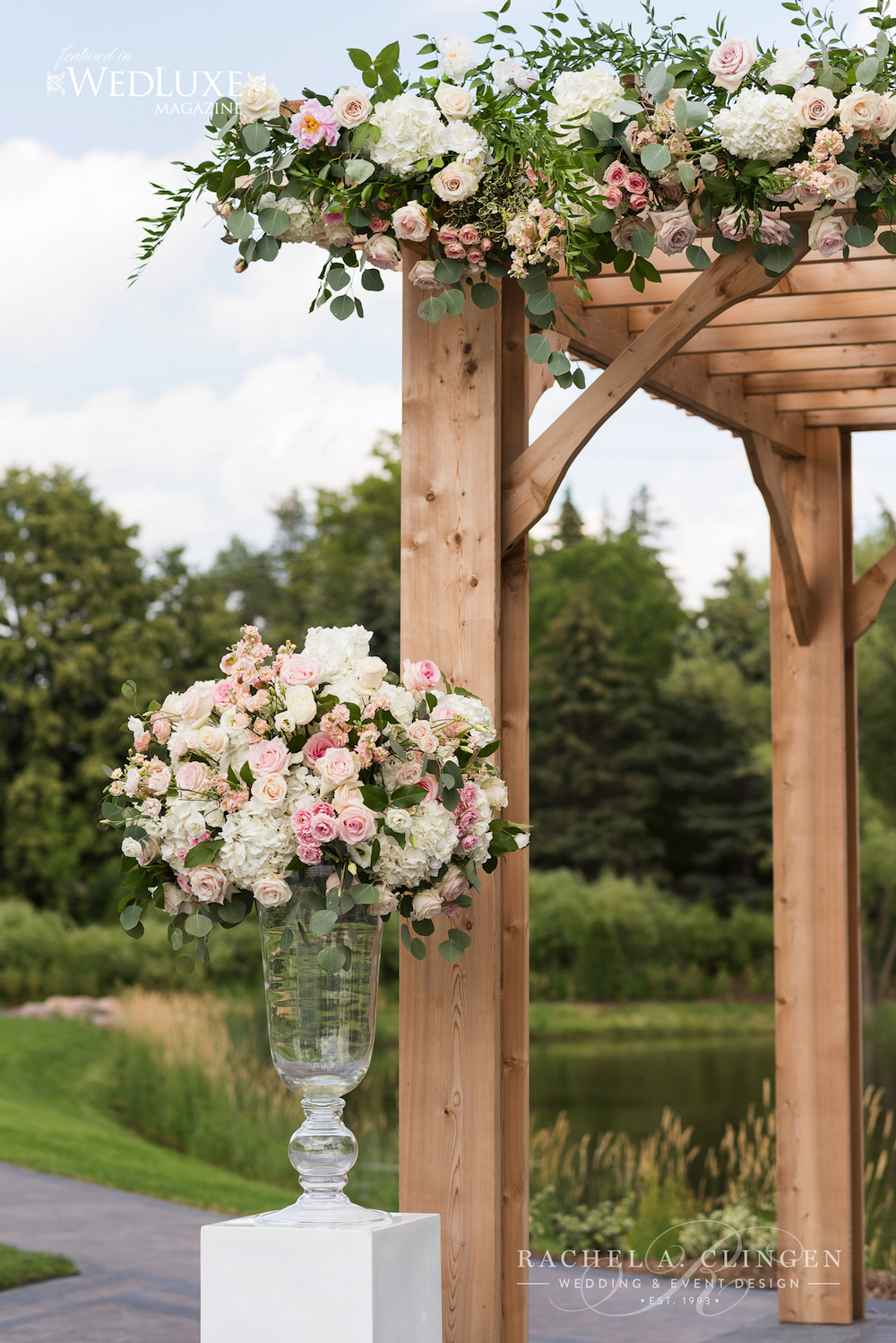 Nhl’er, Steve Stamkos, currently playing hockey for the Tampa Bay Lightning and his high school sweet heart Sandra, tied the knot at the beautiful Arlington Estate. Beautiful Sandra wanted the decor to be soft and pretty, elegant but not over the top. The romantic ceremony took place under a dreamy floral detailed gazebo. Soft blush draping, a floral enclosed band area and an amazing dance floor added an element of sophistication to the room. Our team designed a mix of high and low florals on the guest tables. The amazing night ended with a spectacular fire works display!