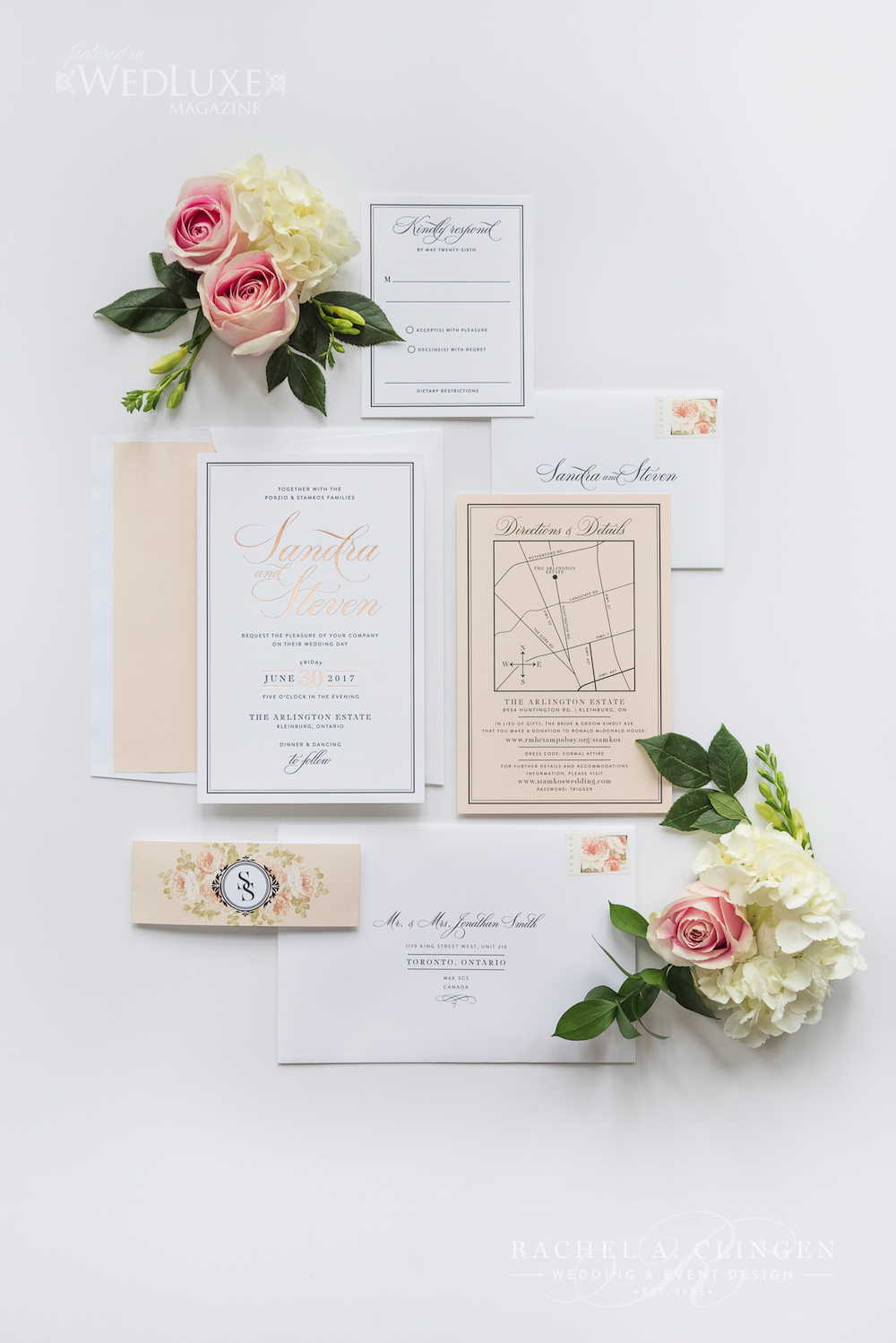 photography – 5ive15ifteen Photo Company, decor and flowers – Rachel A. Clingen Wedding & Event Design, planning – Laura & Co. Events venue – The Arlington Estate, stationery and dance floor design- Paper & Poste, gown – Martina Liana from Superior Bridal, shoes – Jimmy Choo, earrings – Saks Fifth Avenue, hair and make-up – Fancy Face Inc., bridesmaids dresses – Sorella Vita from Superior Bridal, formal ware – Tom James Company, grooms shoes – Tom Ford from Harry Rosen, furniture and furniture rentals – Contemporary Furniture Rentals Inc., draping – Eventure Custom Environments and Event Draping, linens – Around the Table, charger plates – Detailz Couture Event Rentals, cake design – St. Phillips Bakery, dessert design – Patricia’s Cake Creations, entertainments and fireworks – Sole Power Productions, dance floor – Dance Floor Décor, cinematography – DMS Video Productions, transportation – Exclusive Limousine Service