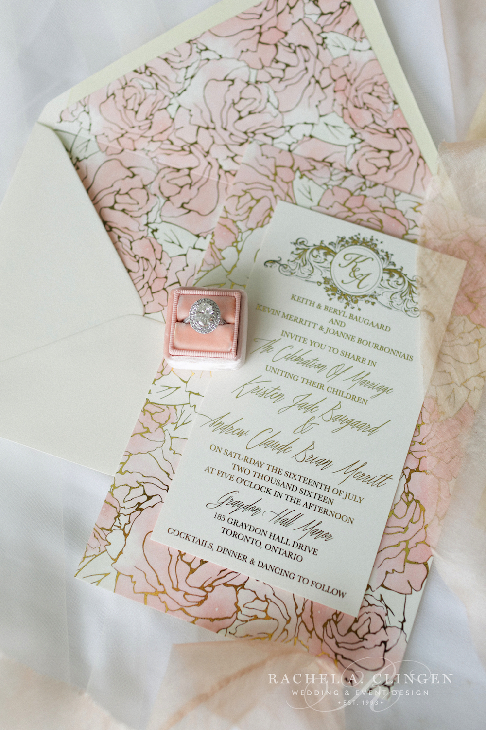 same day planning – Bliss Toronto Inc. photography – Rachel A. Clingen Wedding & Event Design, ceremony venue – Grace Church On-The-Hill, reception venue – Four Seasons Hotel Toronto, stationery and monogram design – Paper & Poste, wedding gown – Ines Di Santo, earrings – MMCrystal from Kleinfeld Hudson’s Bay, necklace – Kleinfeld Hudson’s Bay, brides shoes – Jimmy Choo from Holt Renfrew, veil – Ines Di Santo from Kleinfeld Hudson’s Bay, hair – Jeanie Vella of House of Mann, make -up – Lindsay Dagenais, bridesmaids gowns – BCBGeneration, grooms suit – Garrison Bespoke, cufflinks and bow tie – Harry Rosen, grooms shoes – To Boot New York from Harry Rosen, lounge furniture – Contemporary Furniture Rentals Inc. draping – Eventure Custom Environments and Event Draping, linens – Around the Table, black stemware – Chair-man Mills, chargers and chairs – Detailz Couture Event Rentals, dance floor – Event Graffiti cake – Bobbette & Belle