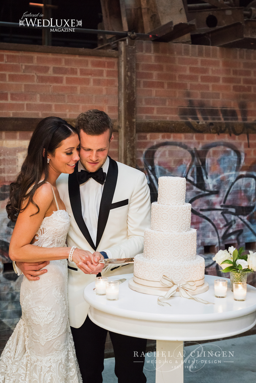 photography – 5ive15ifteen Photo Company, planning – Laura & Co. Events, decor and floral design – Rachel A Clingen Wedding & Event Design, venue – Evergreen Brick Works, stationery – Paper & Poste, gown – Berta from Powder, shoes – Jimmy Choo, earrings – Hueb from Saks Fifth Avenue, bracelets – Birks, veil- Pronovias, clutch – Yves Saint Laurent, rings – Harris Gems, hair and make-up – Fancy Face Inc., bridesmaids dresses – Jill Stuart Gowns from BHLDN, formalwear and cufflinks – Garrison Bespoke, shoes – Salvatore Ferragamo from Holt Renfrew, watch – Royal De Versailles, groomsmen suits – Suits from Indochino, furniture rentals – Contemporary Furniture Rentals Inc., Plate Occasions, Detailz Couture Event Rentals, and Linen Closet, crystal chandeliers – Three Design, moss dog – Filmgreens Toronto, catering – Belong Catering, cake design – Bobbette & Belle, entertainment – Saturday Night Jive and DJ Flash from Across the Board Entertainment, dance floor production – Event Graffiti, lighting and av – FireDog Creative, cinematography – Outside In Studios,