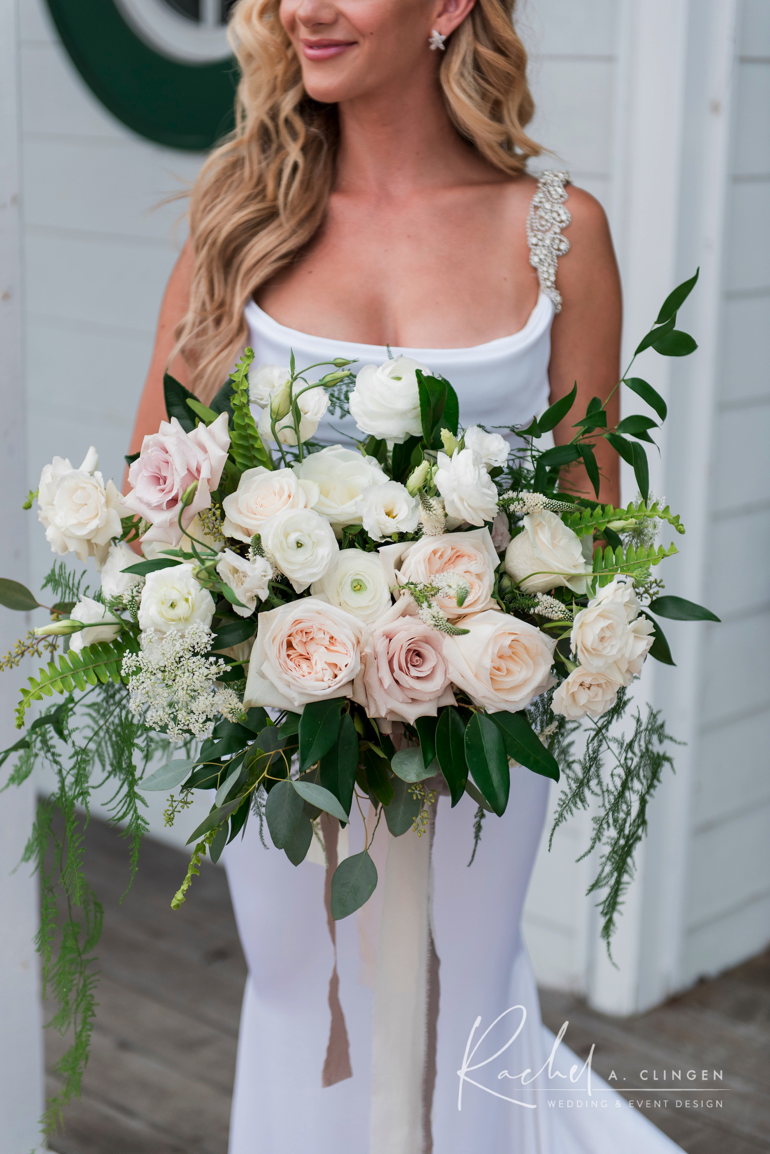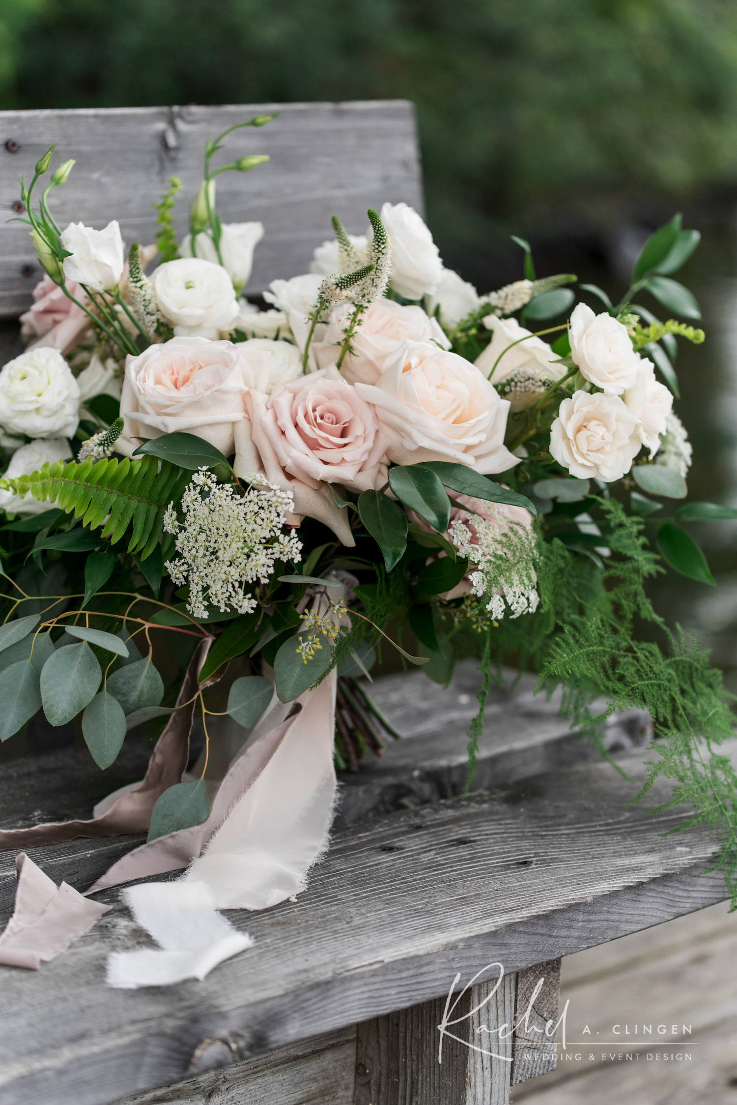 Drew and Nicole wanted an elegantly casual Muskoka wedding. Drew Doughty plays NHL hockey for the L.A Kings, but their Canadian roots led them to host their special day in Canada’s Muskoka region at the Sherwood Inn. We had the most fabulous time designing their pretty wedding with the amazing Toronto wedding planner Ashley Pigott. Nicole is a notable fashion photographer and her creative eye was an asset in every creative meeting. The design for the decor and flowers reflected Nicoles’ down-to-earth relaxed and friendly personality.  Soft and pretty but approachable was the goal! Not pretentious or overdone, this Muskoka wedding was the essence of rustic elegance.  Our creative team designed a stunning overgrown of sorts, floral canopy for the ceremony that fit right into the Muskoka canvas. Guests would gather later under a tent for dinner and dancing.