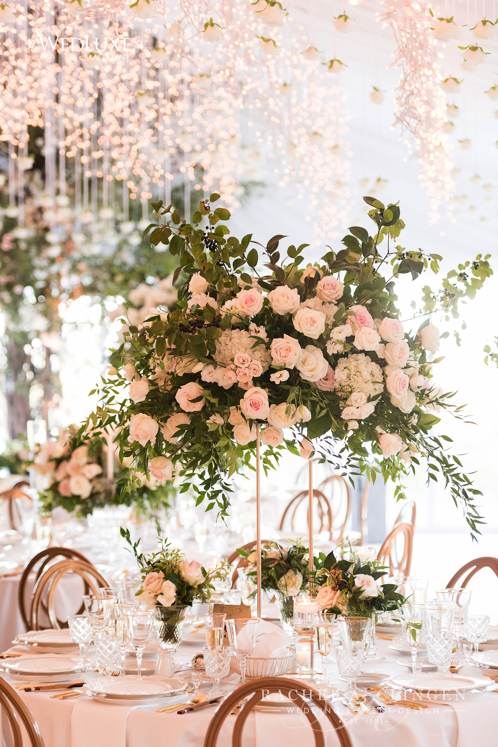 Nhl’er, Steve Stamkos, currently playing hockey for the Tampa Bay Lightning and his high school sweet heart Sandra, tied the knot at the beautiful Arlington Estate. Beautiful Sandra wanted the decor to be soft and pretty, elegant but not over the top. The romantic ceremony took place under a dreamy floral detailed gazebo. Soft blush draping, a floral enclosed band area and an amazing dance floor added an element of sophistication to the room. Our team designed a mix of high and low florals on the guest tables. The amazing night ended with a spectacular fire works display!