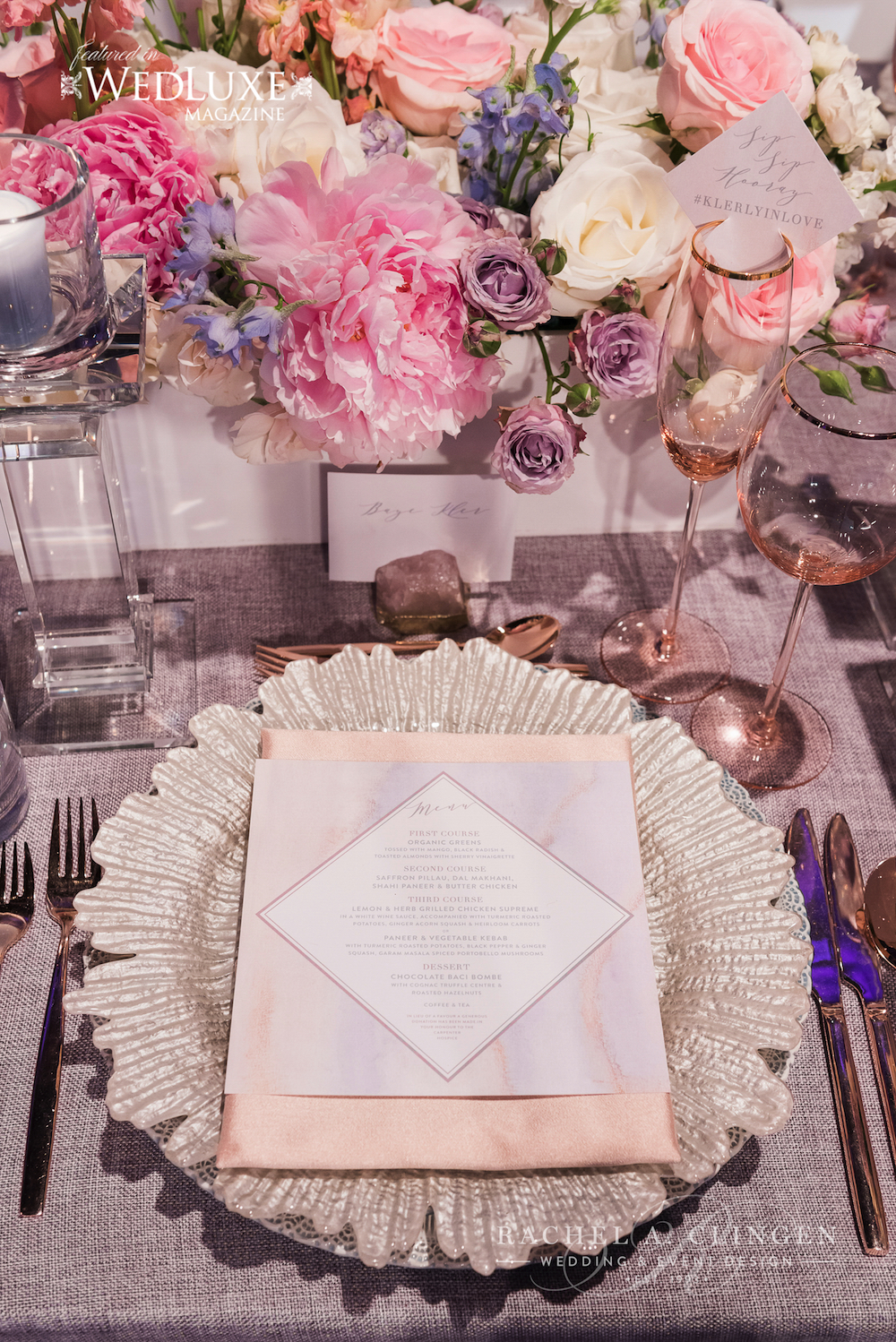 The blending of cultures is a beautiful thing and Baye and Jags multi day Indian fusion wedding was full of gorgeous elements. Our dear friend Baye and fellow wedding industry colleague, wanted to incorporate the ‘colours of the year’ for 2016. Rose quartz and soft pastel hues of purples and pinks we designed the ceremony in the Artifacts Room at Liberty Grand with beautiful magnolia trees and rows of pretty pastel delphiniums. Guests dined at gallery tables lined with florals and candles. Thank you Baye and Jag for including us in your special day!