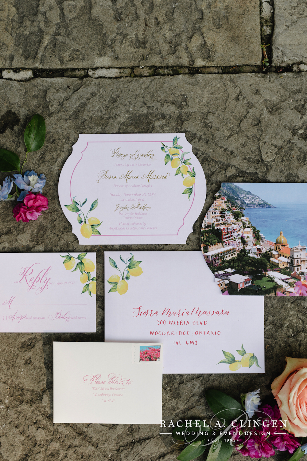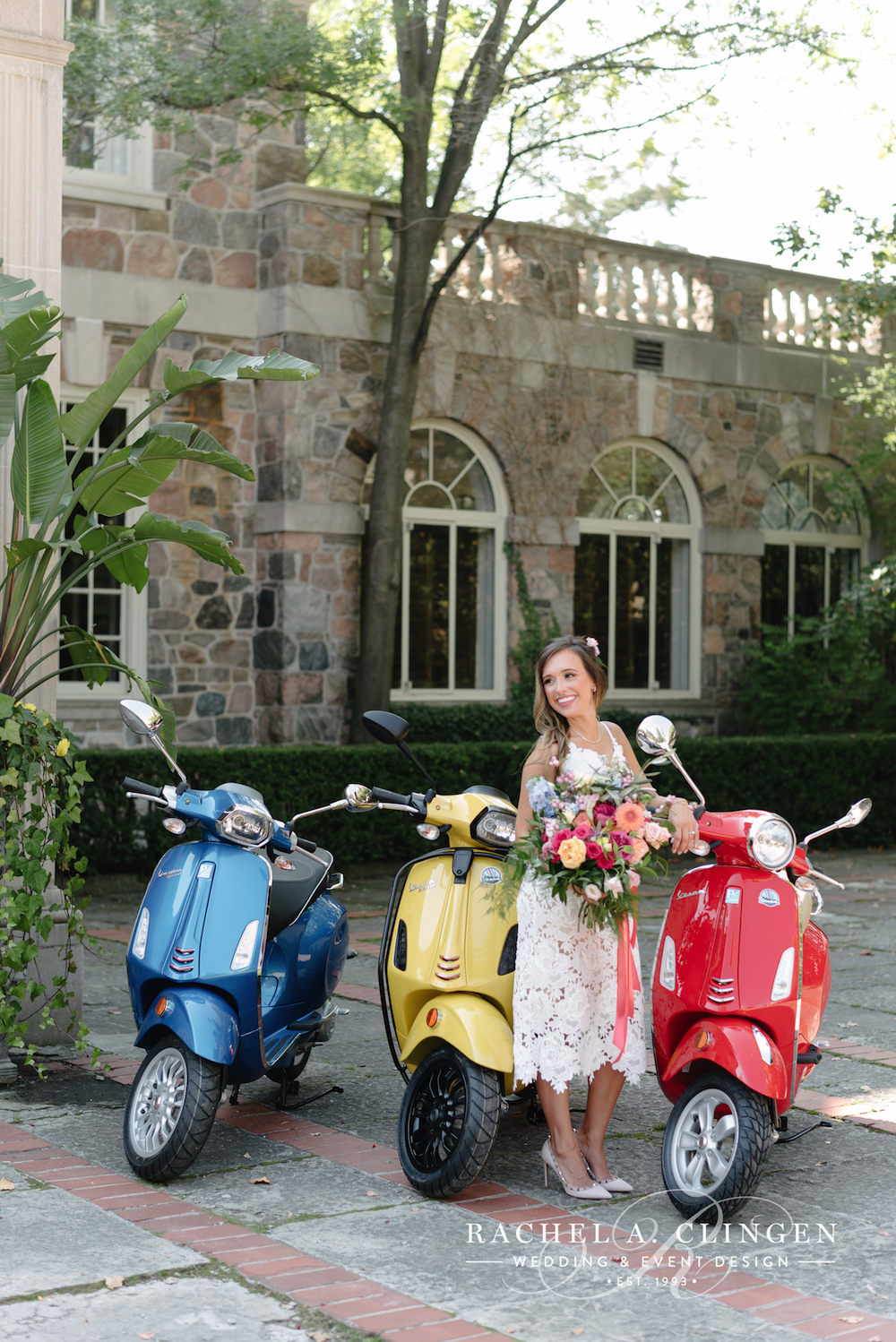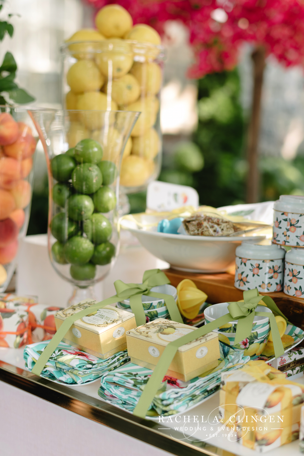 Sierra’s Almalfi inspired bridal shower at Graydon Hall has us dreaming of lemon markets and lemoncello. Along side some other amazing Toronto wedding industry folks, our team helped transform the terrace and dining room at Graydon Hall into an Italian Piazza. The atmosphere was complete with a Mercato where guests could pick out some of their favourite treats, as well as colourful vespa’s and an accordion player. The beautiful flowers and decor were full of colours which were accented with fresh fruit.