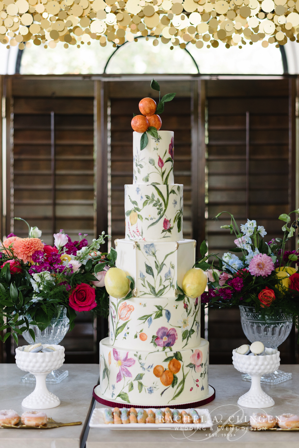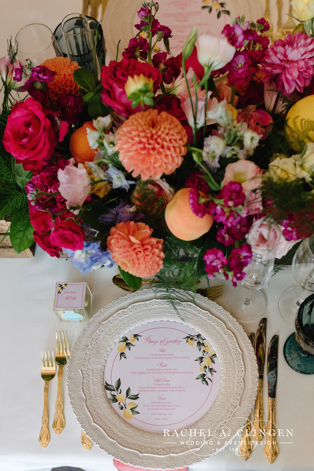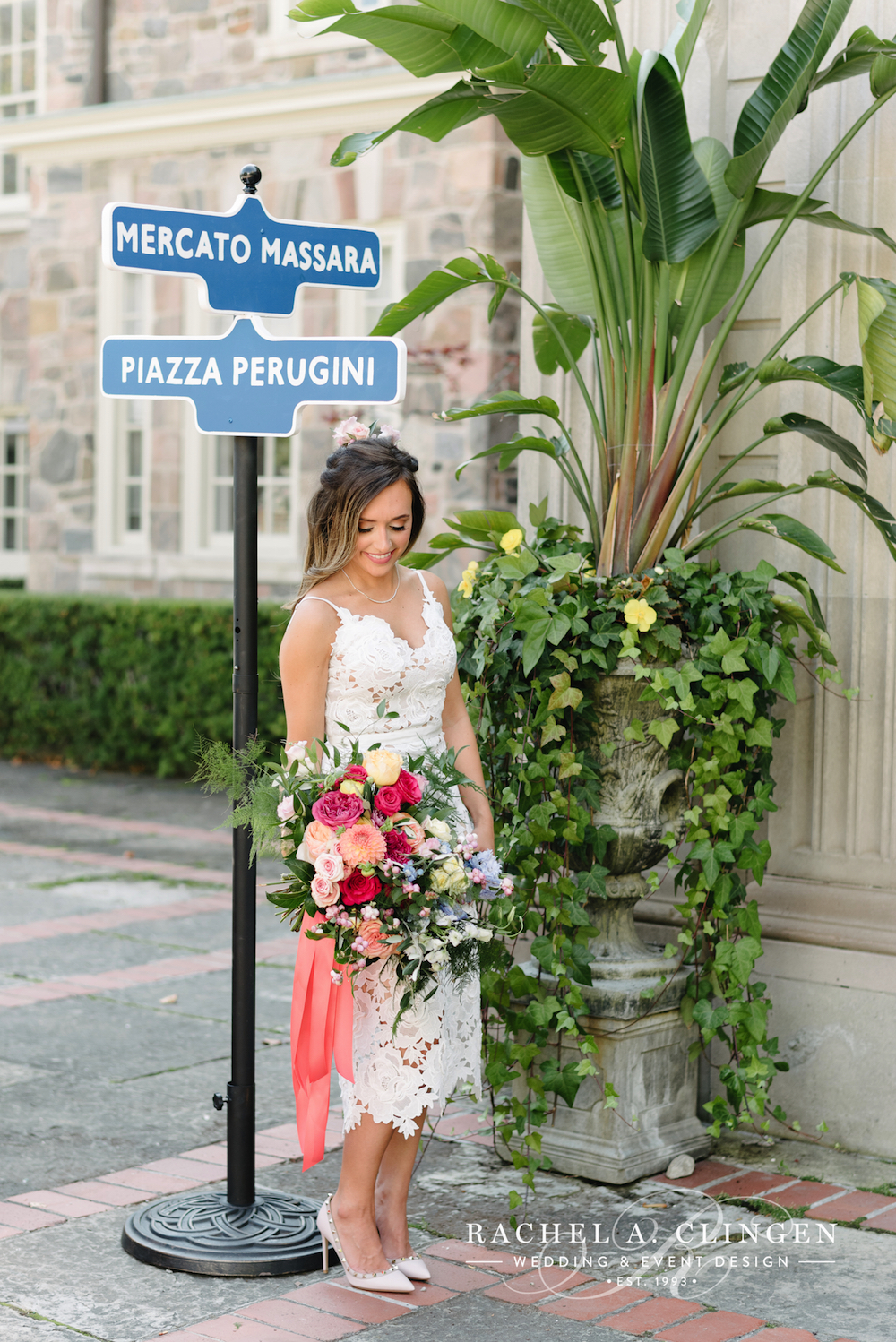 Sierra’s Almalfi inspired bridal shower at Graydon Hall has us dreaming of lemon markets and lemoncello. Along side some other amazing Toronto wedding industry folks, our team helped transform the terrace and dining room at Graydon Hall into an Italian Piazza. The atmosphere was complete with a Mercato where guests could pick out some of their favourite treats, as well as colourful vespa’s and an accordion player. The beautiful flowers and decor were full of colours which were accented with fresh fruit.