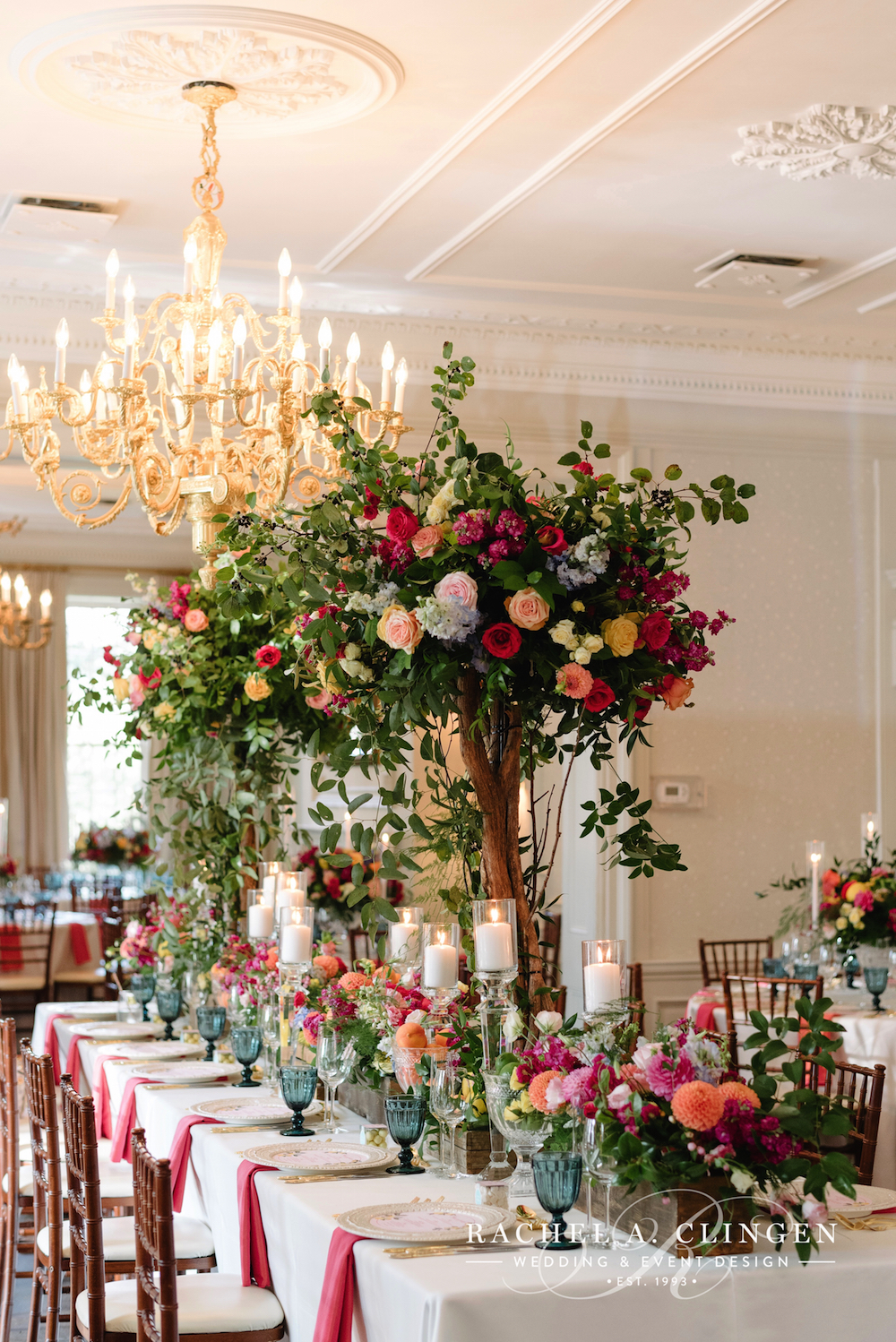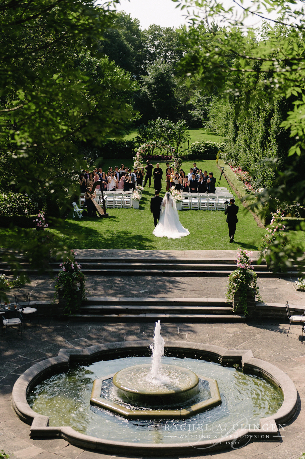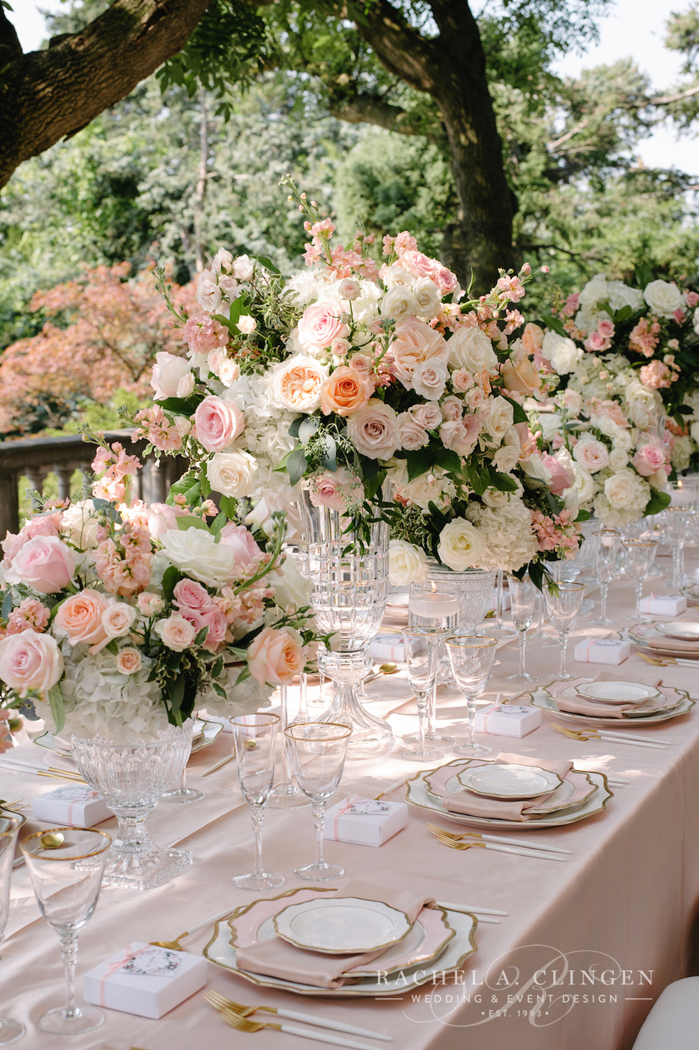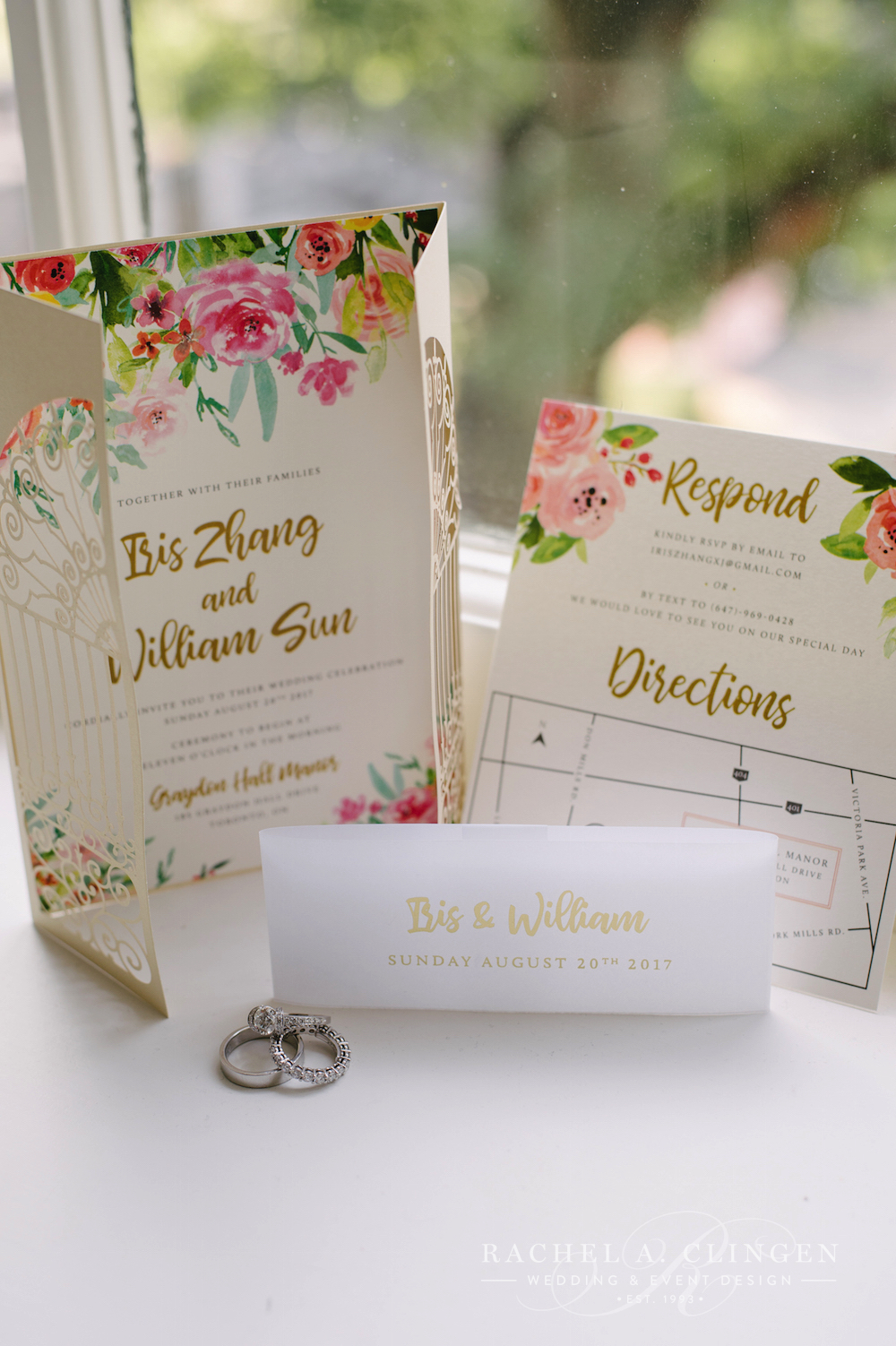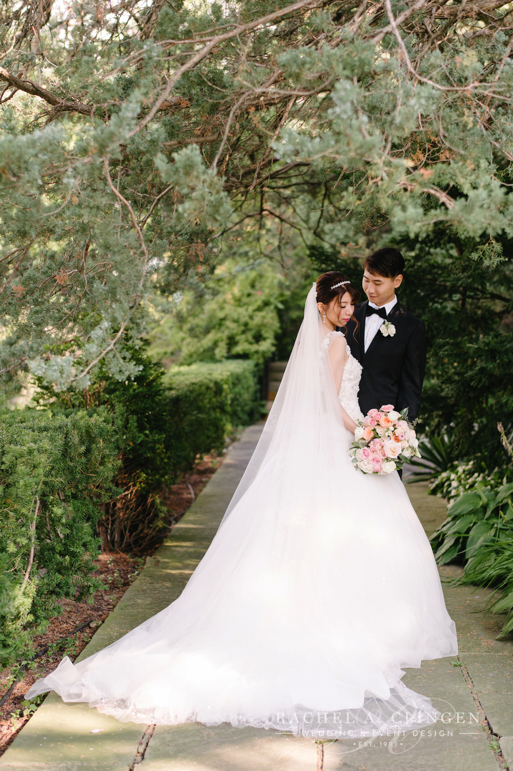 On a warm and sunny Sunday Iris and William exchanged their vows under a beautiful floral arch in the gardens at Graydon Hall. Their Chinese wedding at Graydon Hall was an intimate affair followed by a afternoon lunch on the terrace. Our team created beautiful florals for the long gallery table at which guests enjoyed a fabulous meal by the amazing team at Graydon Hall. Guests were surrounded by elegance at every place setting. Gorgeous crystal vases filled with fresh blooms lined the table and created a luxurious setting for Iris and Williams guests.