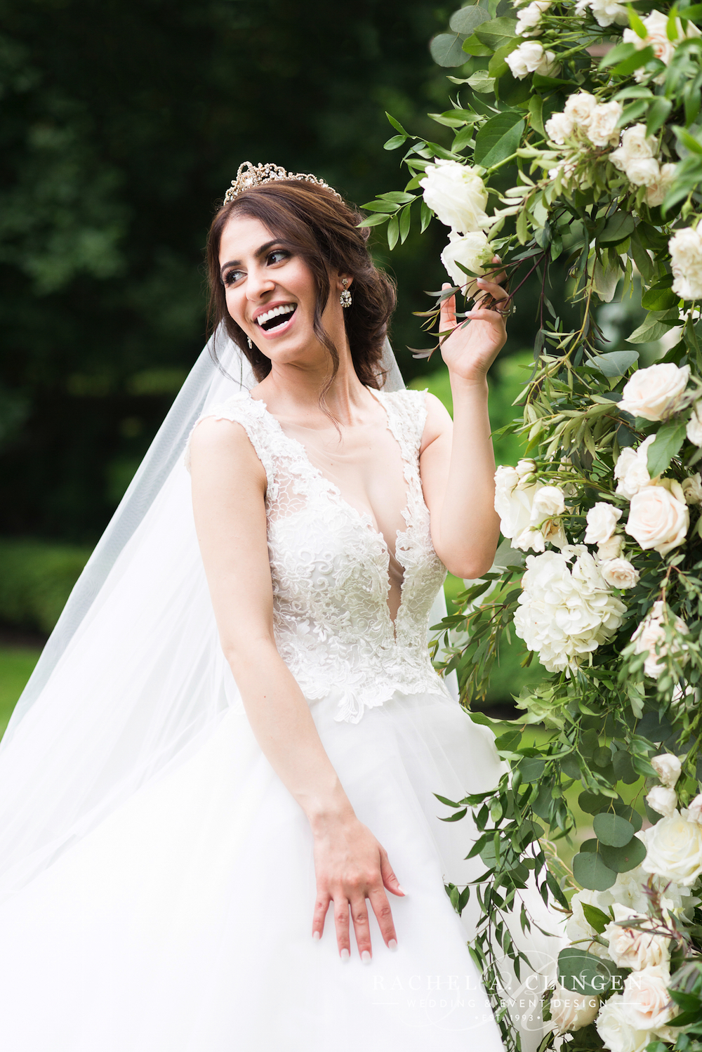 There’s just something about a garden wedding and Shadi and Johns beautiful summer wedding at Graydon Hall was picture perfect! Gorgeous Shadi dreamt of a fairtale wedding, enchanting, elegant and full of memories to last a life time. Our team designed the most stunning floral canopy, loaded with garden roses, hydrangeas, spray roses and fresh mixed foliages. Shadi and John expressed their love one for another under the stunning floral structure. The receptions was held on the terrace under the tent which was detailed the prettiest florals from top to bottom. Guests dined at round tables accented with showstopper centrepieces bursting with roses, lysianthus, hydrangeas and a collection of cascading greens.