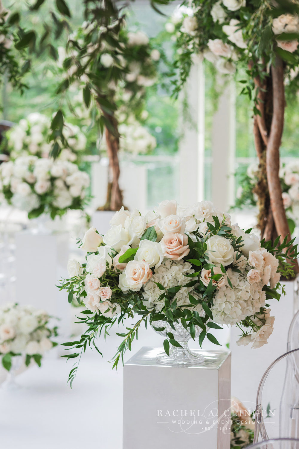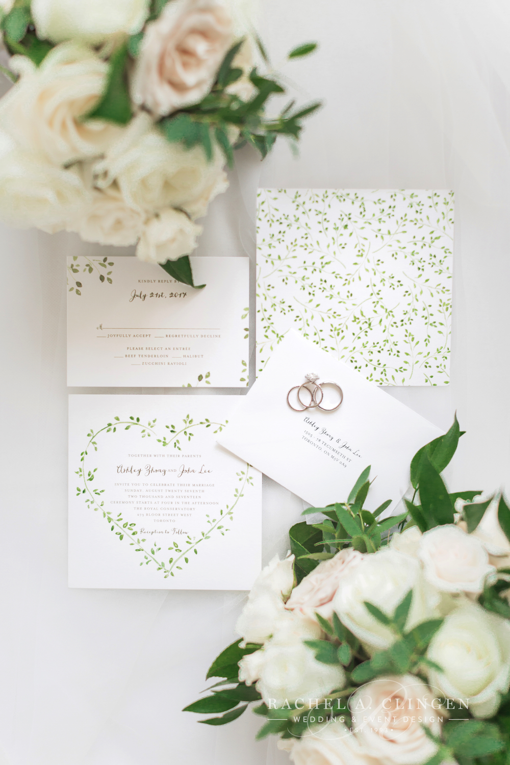 Ashley and John’s wedding at the Royal Conservatory of Music was a refreshing blend of organic and modern elements. Fairy tale decor and flowers created magical ceremony and reception spaces. Fresh blooms in creams and whites, along with an abundance of foliages, filled the modern and bright space at the Royal Conservatory of Music. We designed lush flower trees which lined the aisle as well as suspended floral arch which transformed the venue into an enchanted forest. It was lovely to work with Uphoria events on this pretty Chinese wedding and thank you to One & Only Studio for these beautiful images.