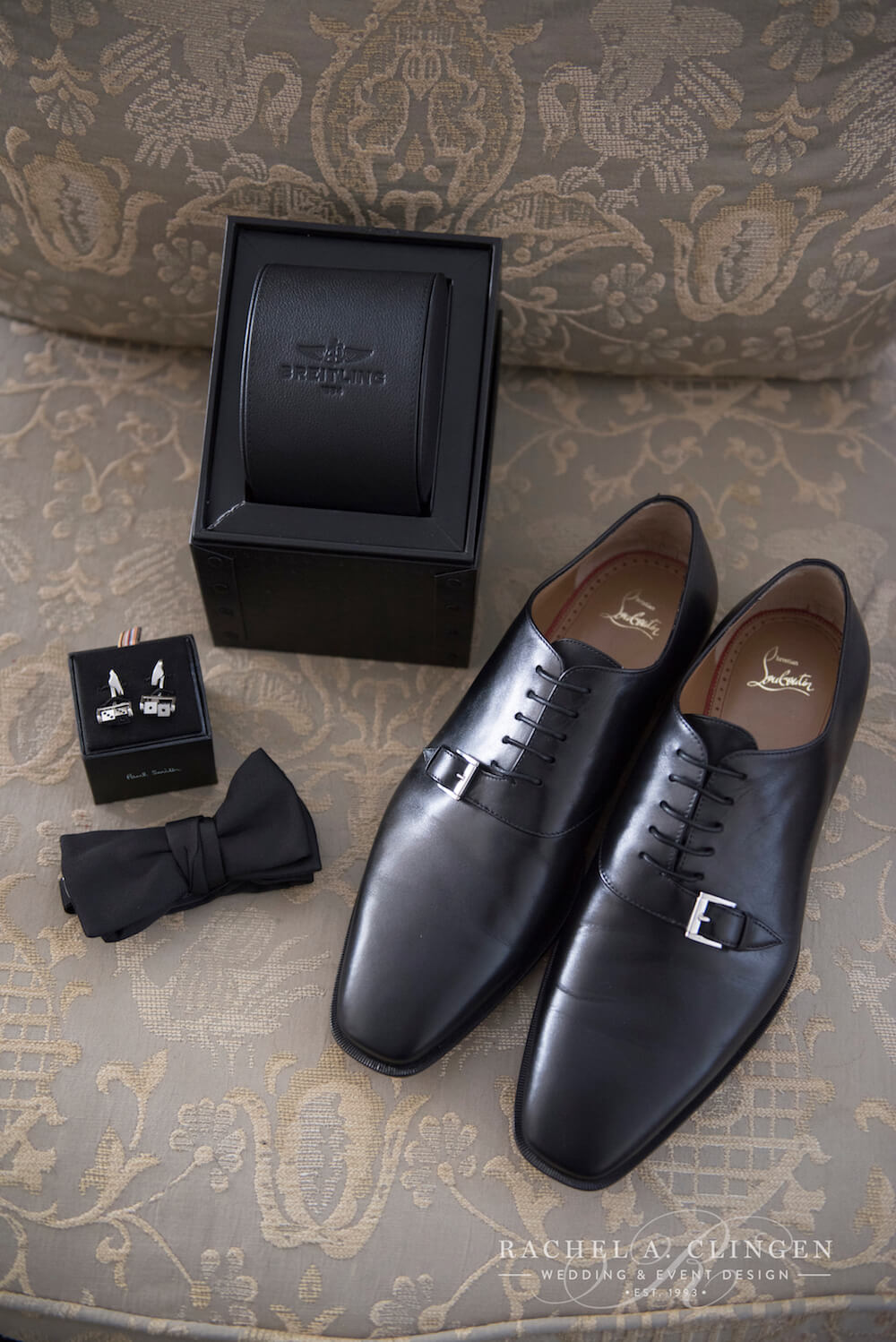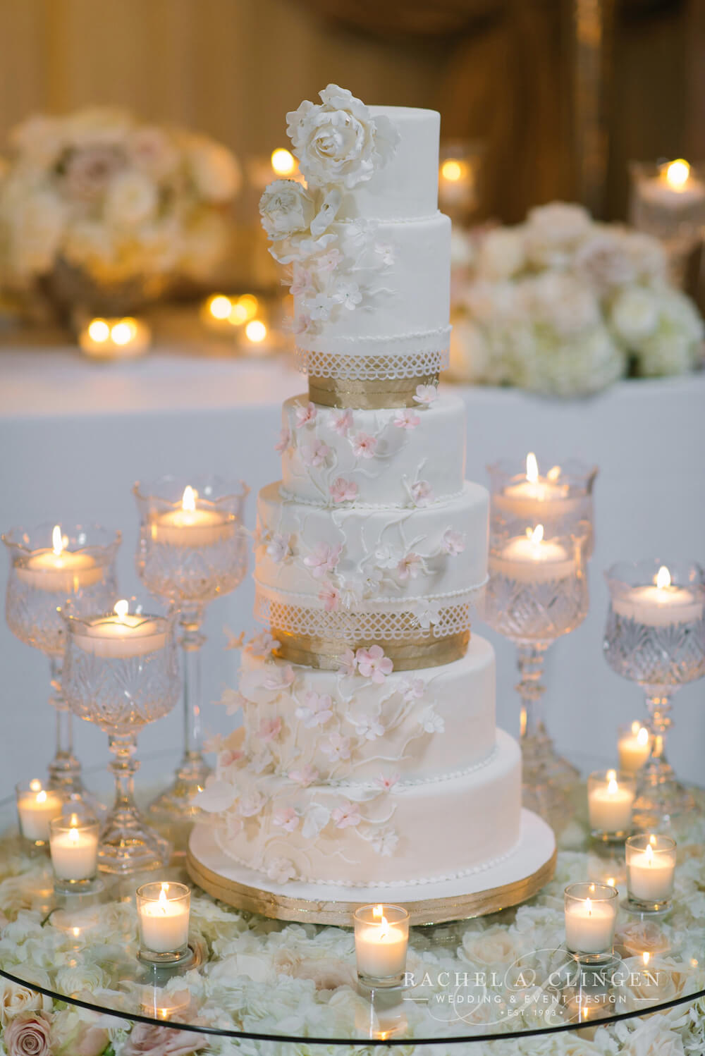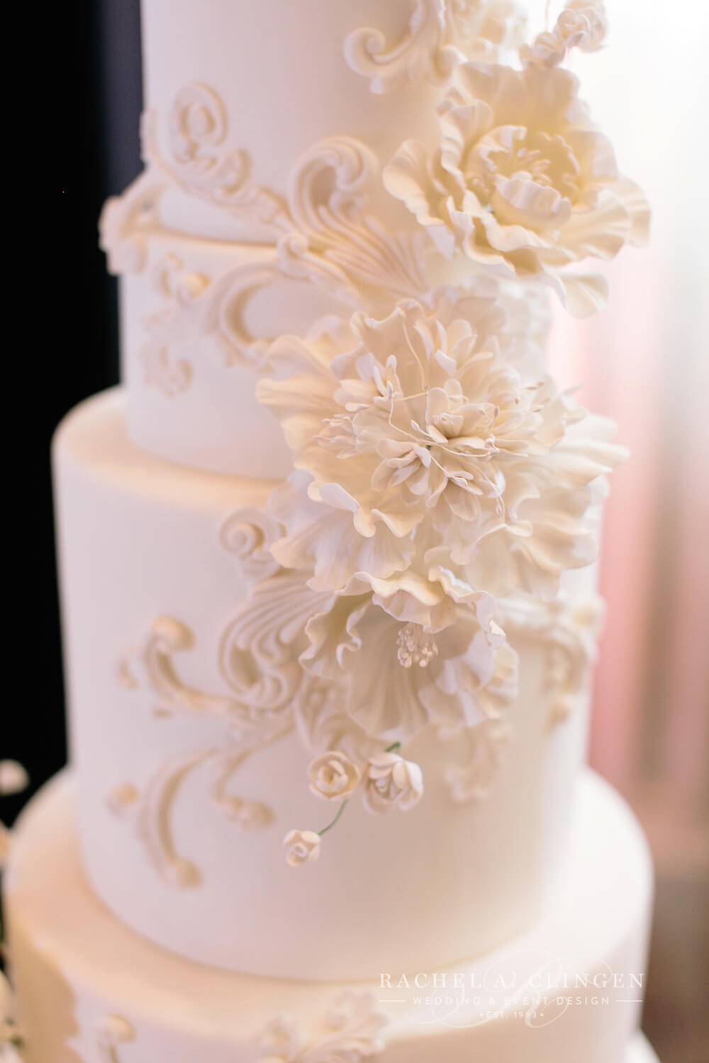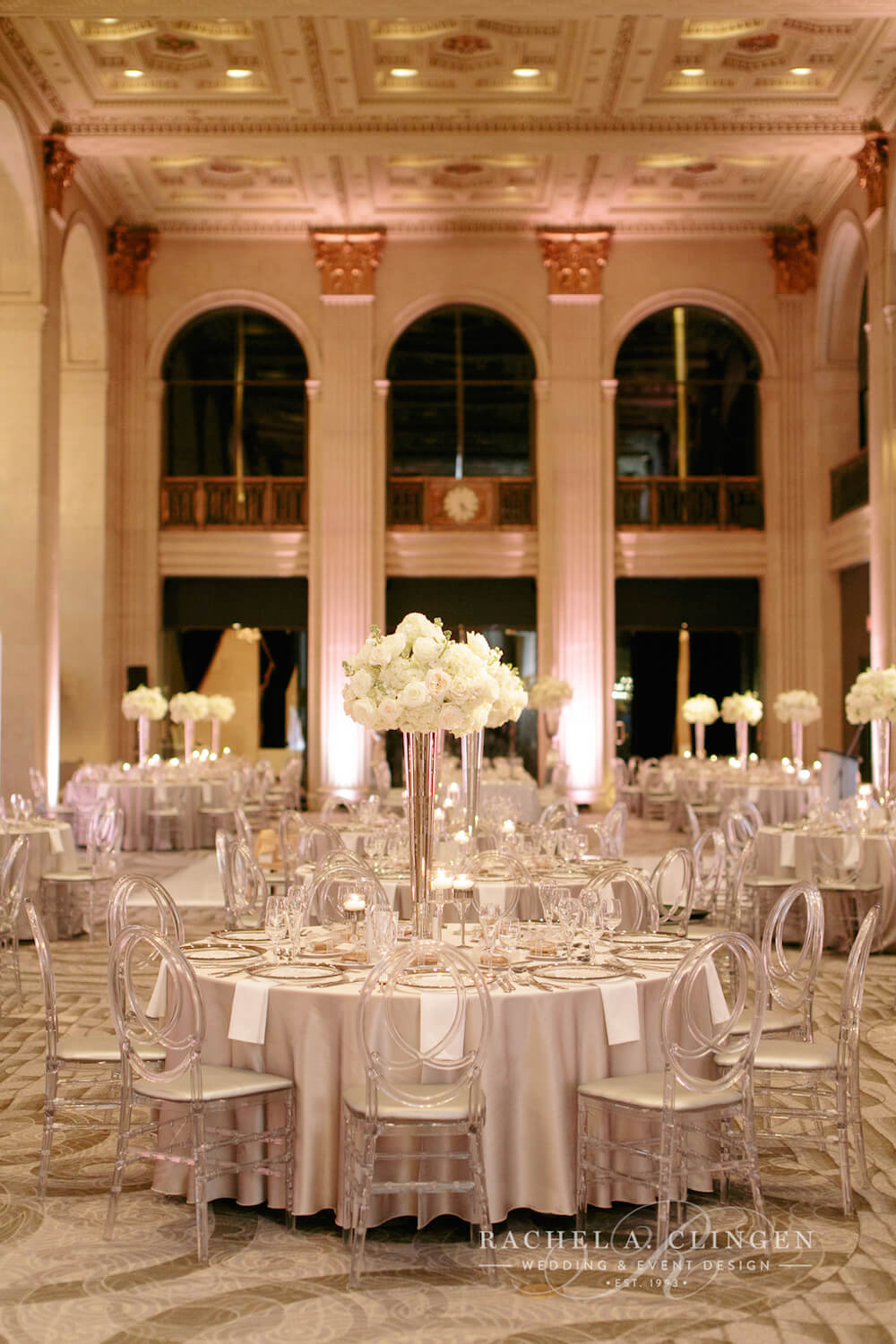 event design, floral and decor – Rachel A. Clingen Wedding & Event Design photography – Mango Studios, venue – Grand Luxe, gown – Lazaro, shoes – Christian Louboutin, makeup – Melandra Makeup Artistry, formalwear – Hugo Boss, cake design – Kenley Kreations Inc, STATIONERY- Printed Love Co, dance floor – Event Graffiti,
