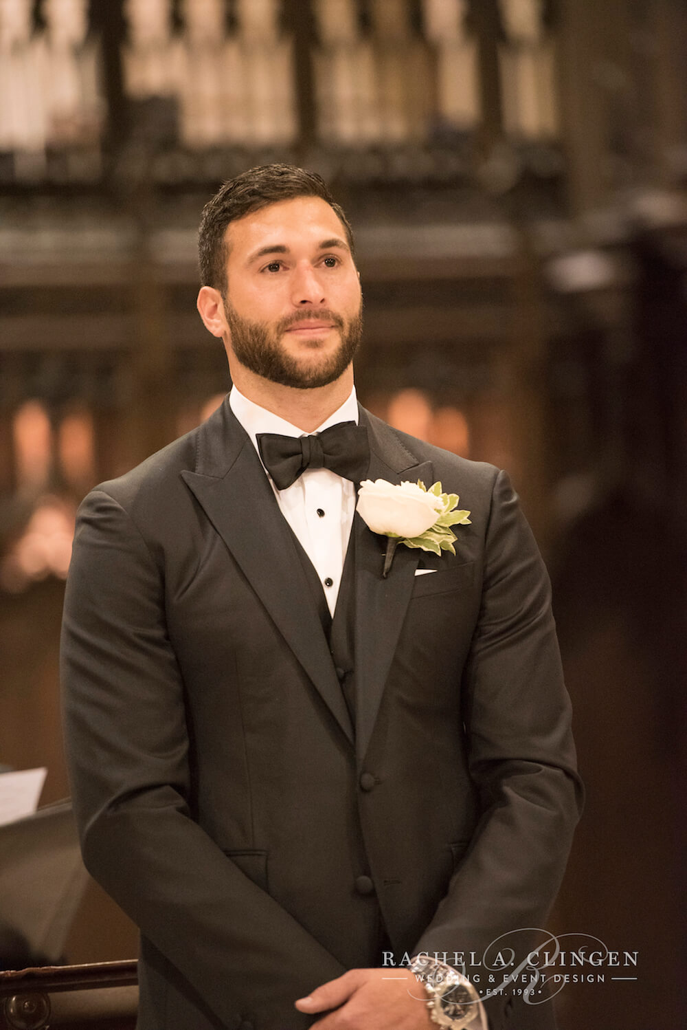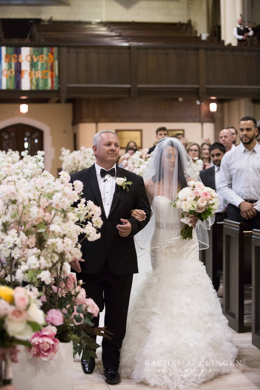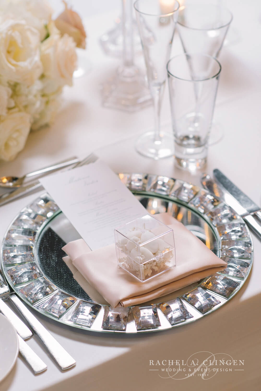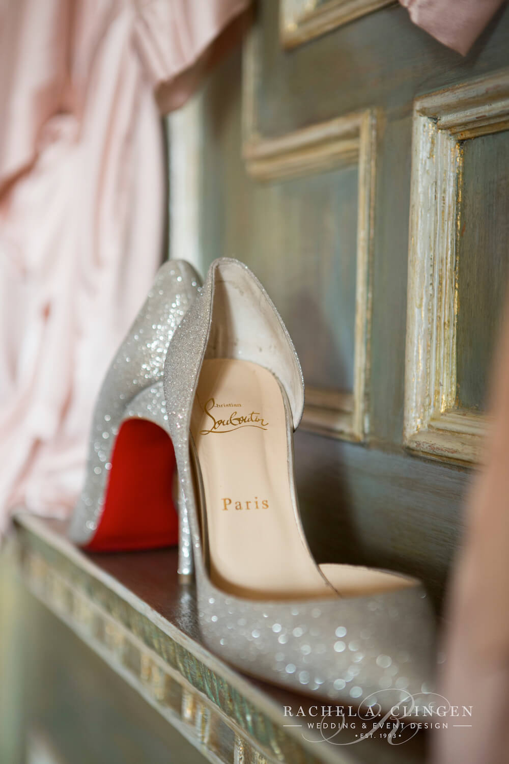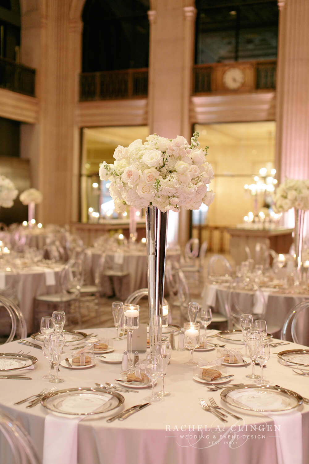 event design, floral and decor – Rachel A. Clingen Wedding & Event Design photography – Mango Studios, venue – Grand Luxe, gown – Lazaro, shoes – Christian Louboutin, makeup – Melandra Makeup Artistry, formalwear – Hugo Boss, cake design – Kenley Kreations Inc, STATIONERY- Printed Love Co, dance floor – Event Graffiti,