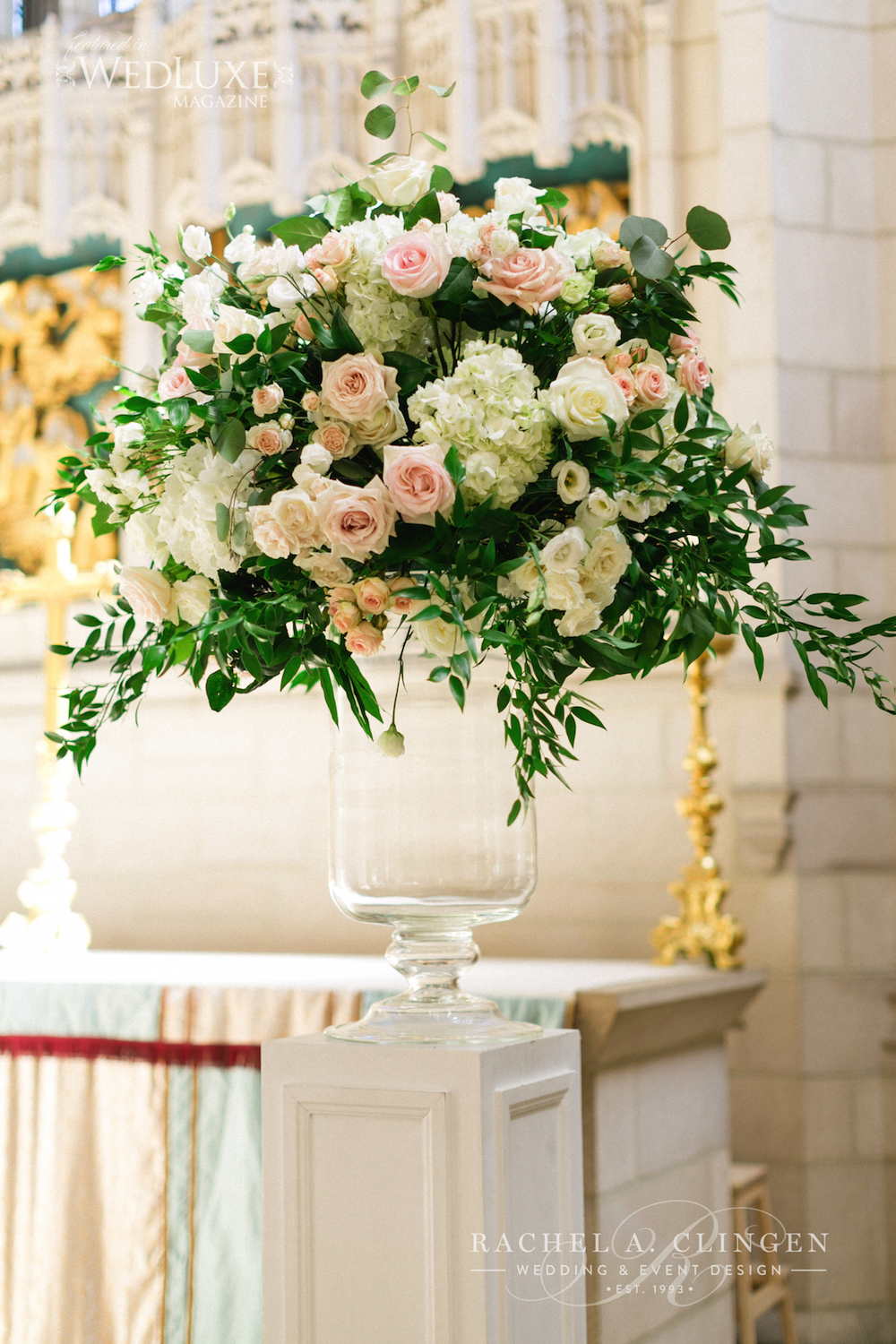 New York Islander, Nhl hockey player Casey Cizikas and his absolutely gorgeous bride Kristy tied the knot at Knox Chapel, followed by a beautiful reception at Palais Royale. The rustic meets romance decor captured Kristy’s love for natural elements like white washed wood and gardens of flowers. Kristy did not want her wedding to look over pretentious, but rather warm and inviting, intimate and romantic. Our team transformed Palais room with a full room draping and beautiful flowers. Unique decor elements included suspended lanterns over guest tables and stunning cascading floral canopy over the head table. We mixed rustic elements such as harvest tables and vineyard chairs with beautiful crystal candlesticks and crystal charger plates. The unique rustic/elegant theme was further developed with with a custom white washed, barn board dance floor. Casey and Cody’s head table was accented by a pretty back drop in cream and blush tones. Congratulations to Kristy and Casey! Thank you for choosing us to create magic for your special day! Wonderful day collaborating with wedding planner Karina Lemke and stunning images by Corina V. Photography.