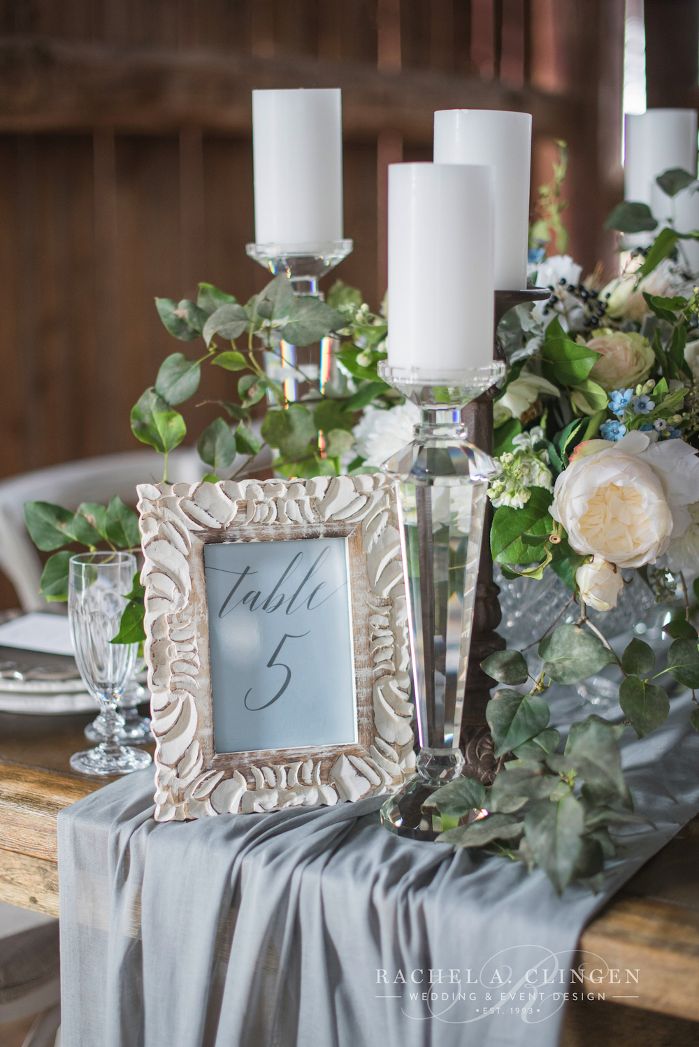 On a brisk and windy day the beautiful wedding barn at Cambium Farms in Caledon was transformed with beautiful flowers and decor, including fresh hues of dusty blues and greys. We couldn’t wait to created some gorgeousness in this unique wedding venue, so we designed the rustic yet elegant wedding ceremony with a floral arch overgrown with white garden roses, blue delphinium and beautiful bunches of fresh foliage. We were thrilled t0 collaborate on this creative assignment with the talented ladies and wedding planners, Thyra and Ellie at Laura and Co. Events. The beautiful table scape decor was the perfect blend of the rustic and the refined. We used our elegant crystal candle sticks mixed with rough hewn wrought iron stands. Low crystal bowls were filled with gorgeous groupings of white flowers including white garden roses and ranunculus along with seeded eucalyptus, lilac leaf and mandina branches and soft and velvety Dusty Miller. There is much appeal for a barn wedding and its the perfect opportunity to blend elegant details with rustic touches. Cambium Farms has a neutral palette and is the perfect venue to create some magic! Beautiful images by our talented friends at Blynda DaCosta Photography.